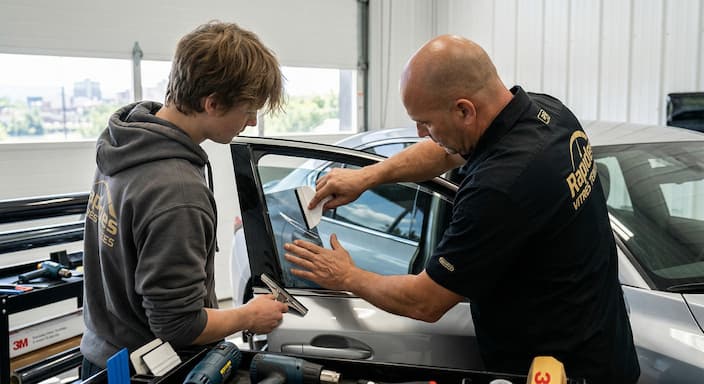 Vous cherchez plus qu'un simple emploi ? Vous voulez un métier manuel gratifiant, payant et en pleine expansion ? Rapides Vitres Teintées vous offre l'opportunité unique de vous former directement sur le terrain. Junior vous prend sous son aile pour une immersion totale dans l'art des vitres teintées.